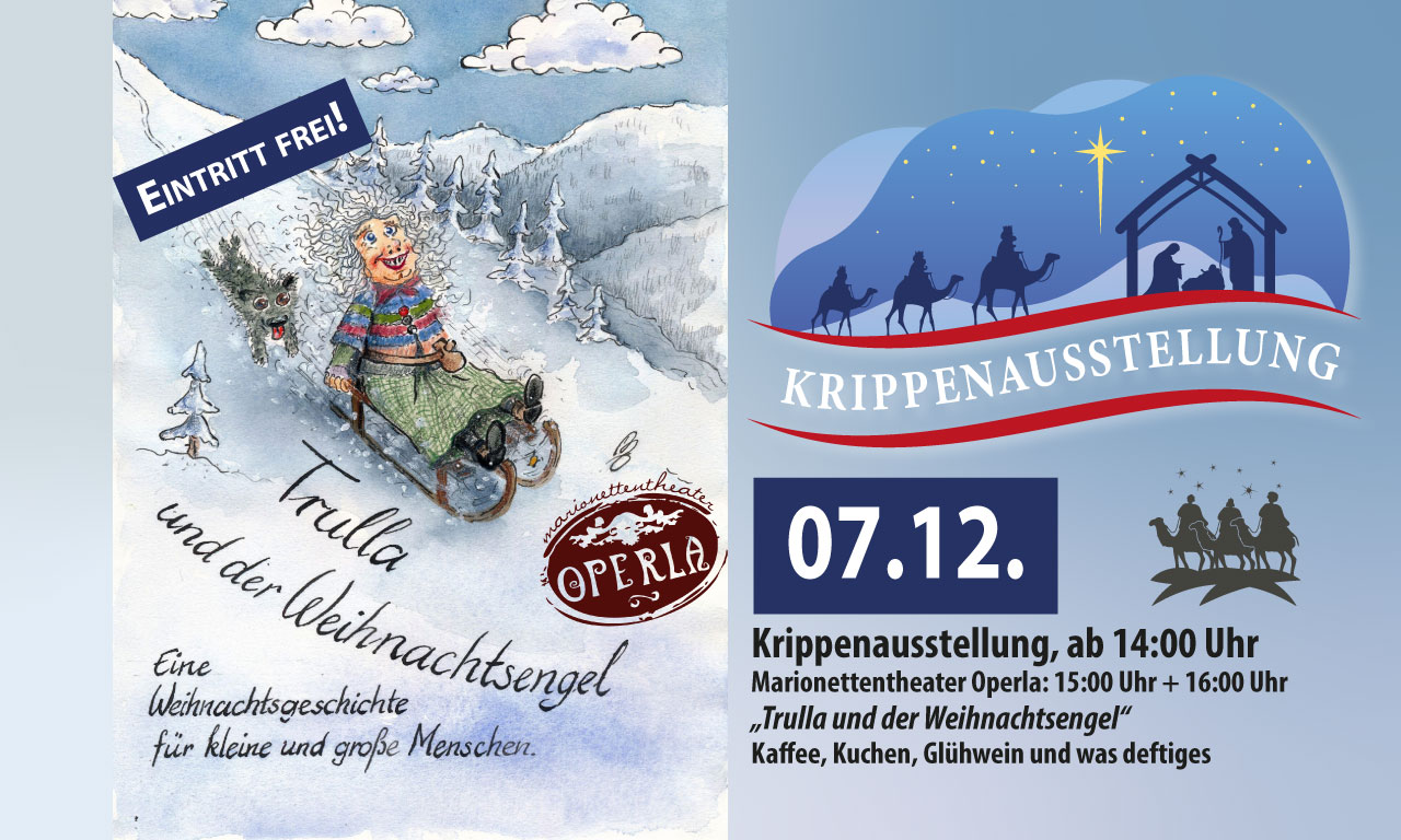am 30.11/07./14.12.2025 in der Scherzenmühle | 07.12. Marionettentheater Operla.